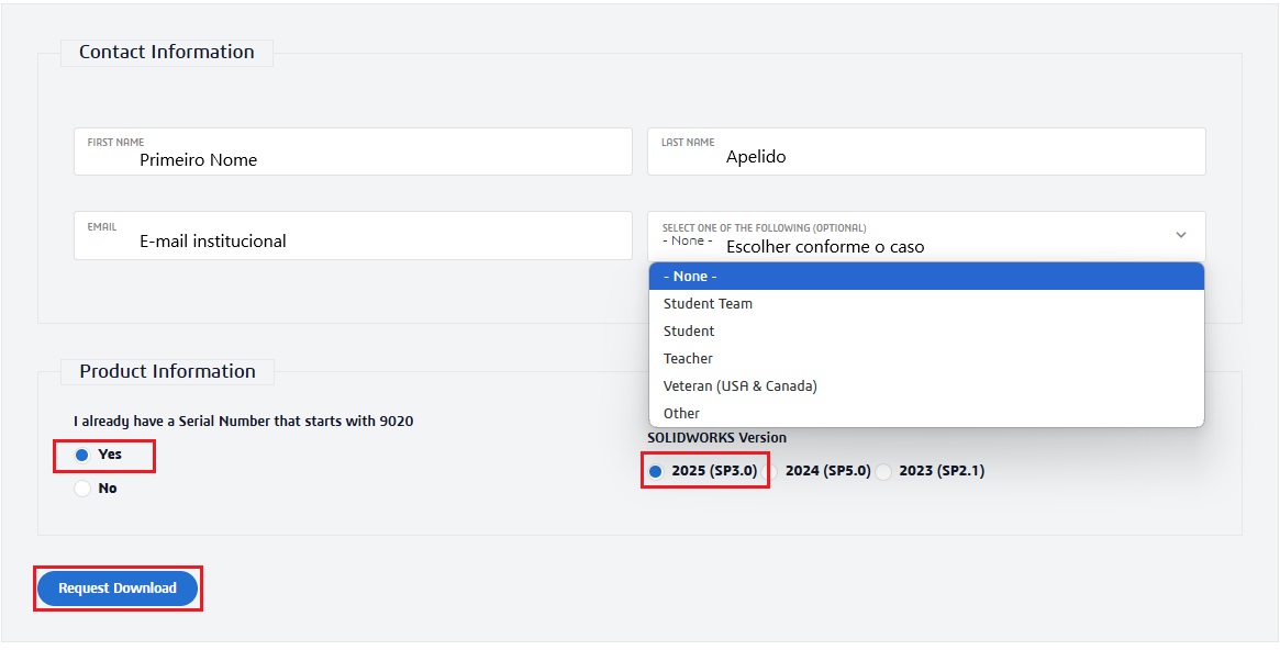 De seguida, deverá fornecer a informação se é estudante ou professor (sendo staff do ISEP deverá optar também pela opção professor), conforme pode ver na imagem seguinte: